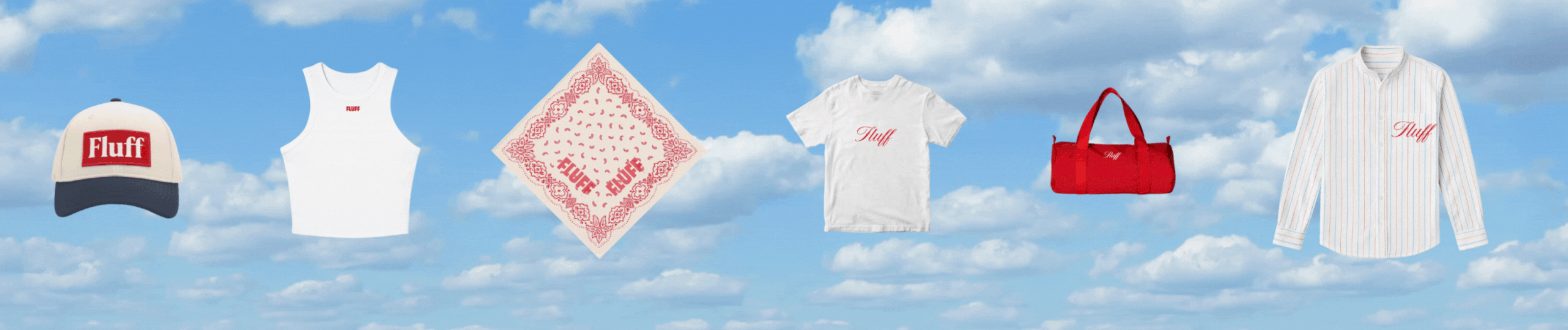 Merch Satin Bandana $25.00 Add To Cart Added! Striped Button Down $45.00 Medium Large Small XLarge Add To Cart Added! The Uniform $22.00 XSmall Small Medium Large XLarge Add To Cart Added! Fluff Trucker Hat $25.00 Add To Cart Added! Mini Production Bag $40.00 Add To Cart Added! Unisex Script White Tee $35.00 Small Medium Large XLarge Add To Cart Added!