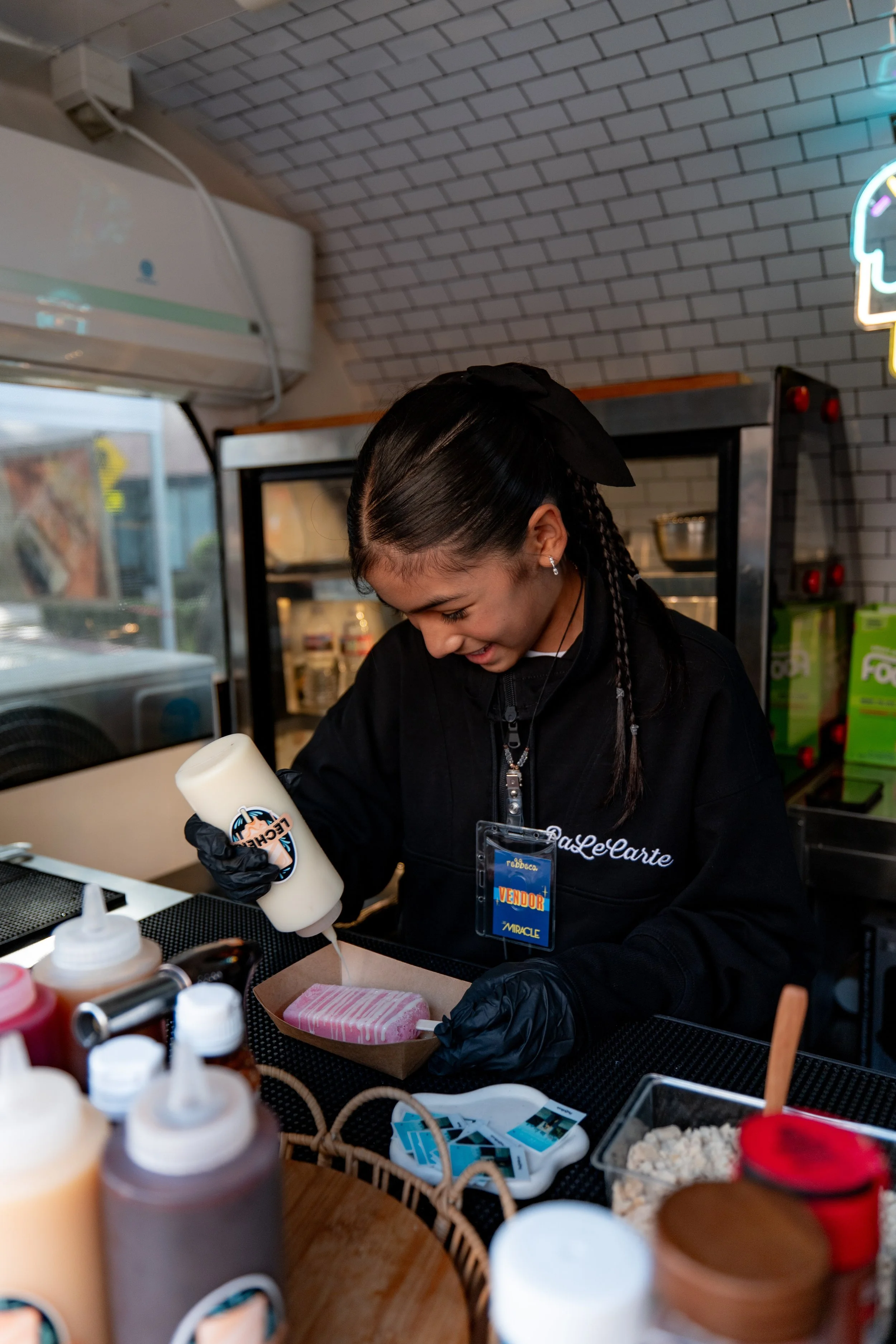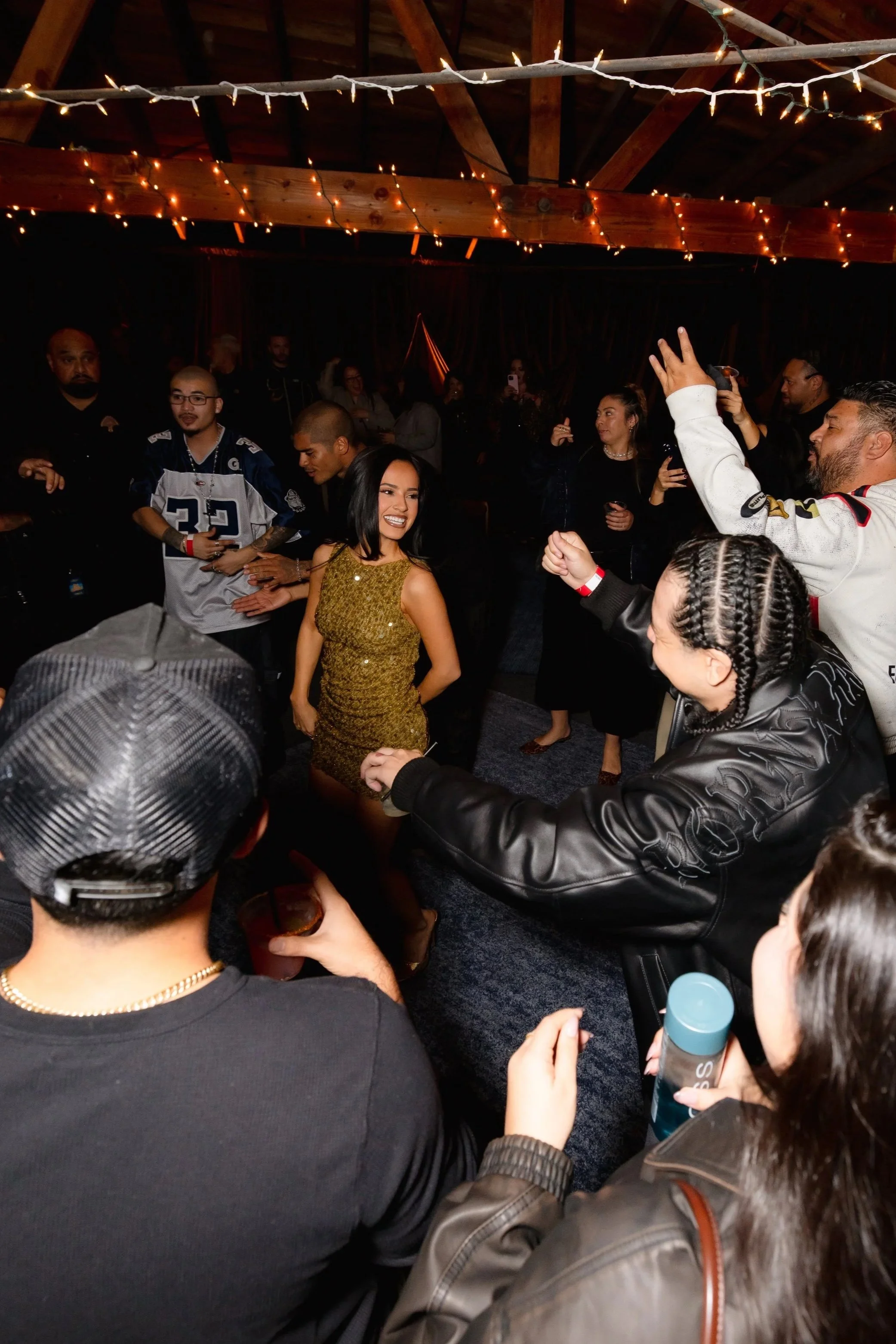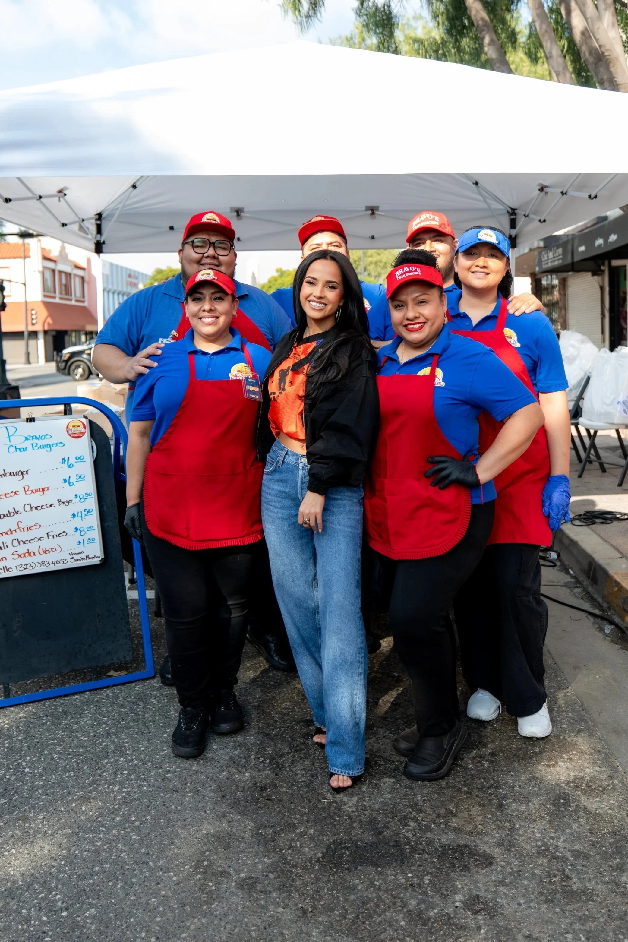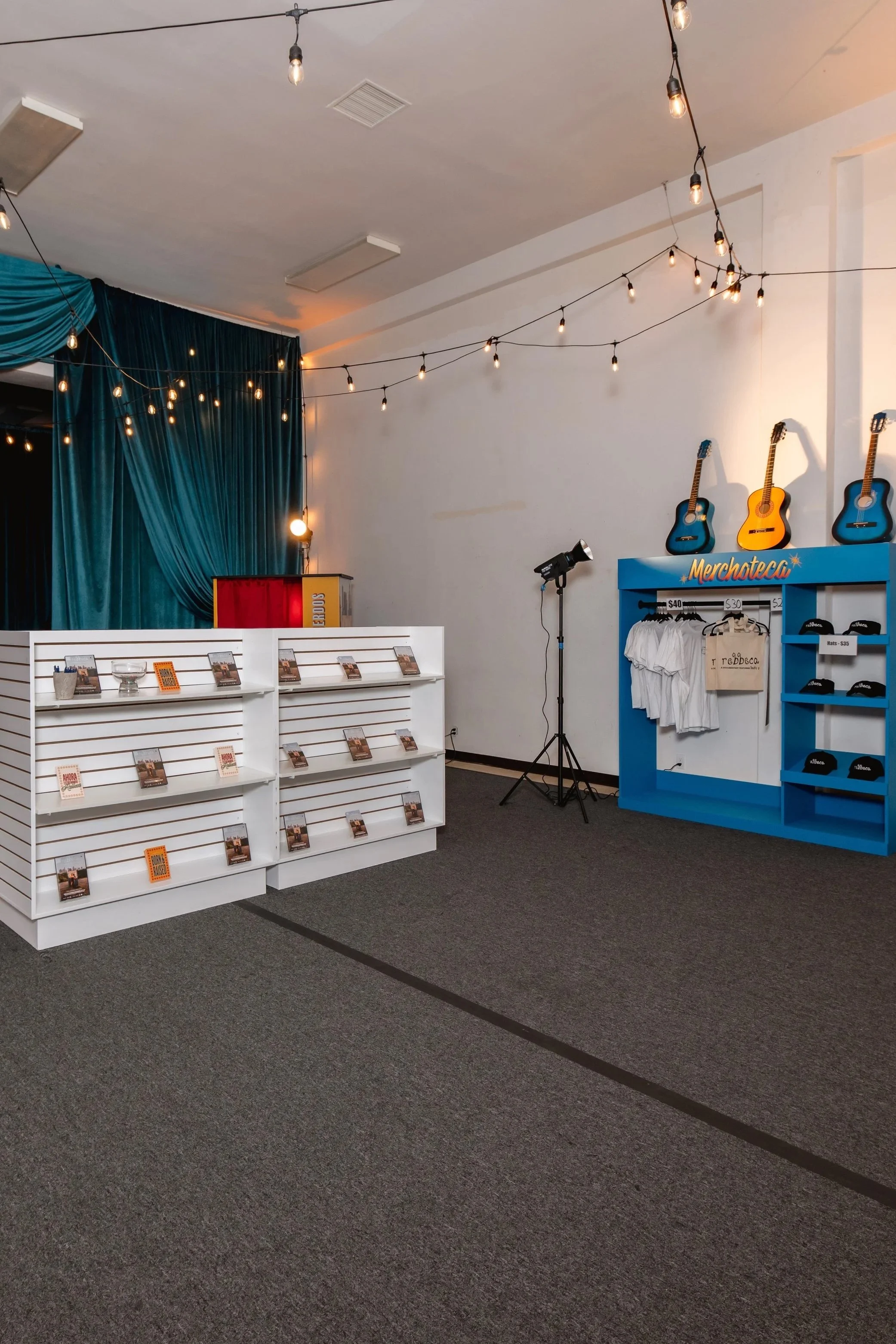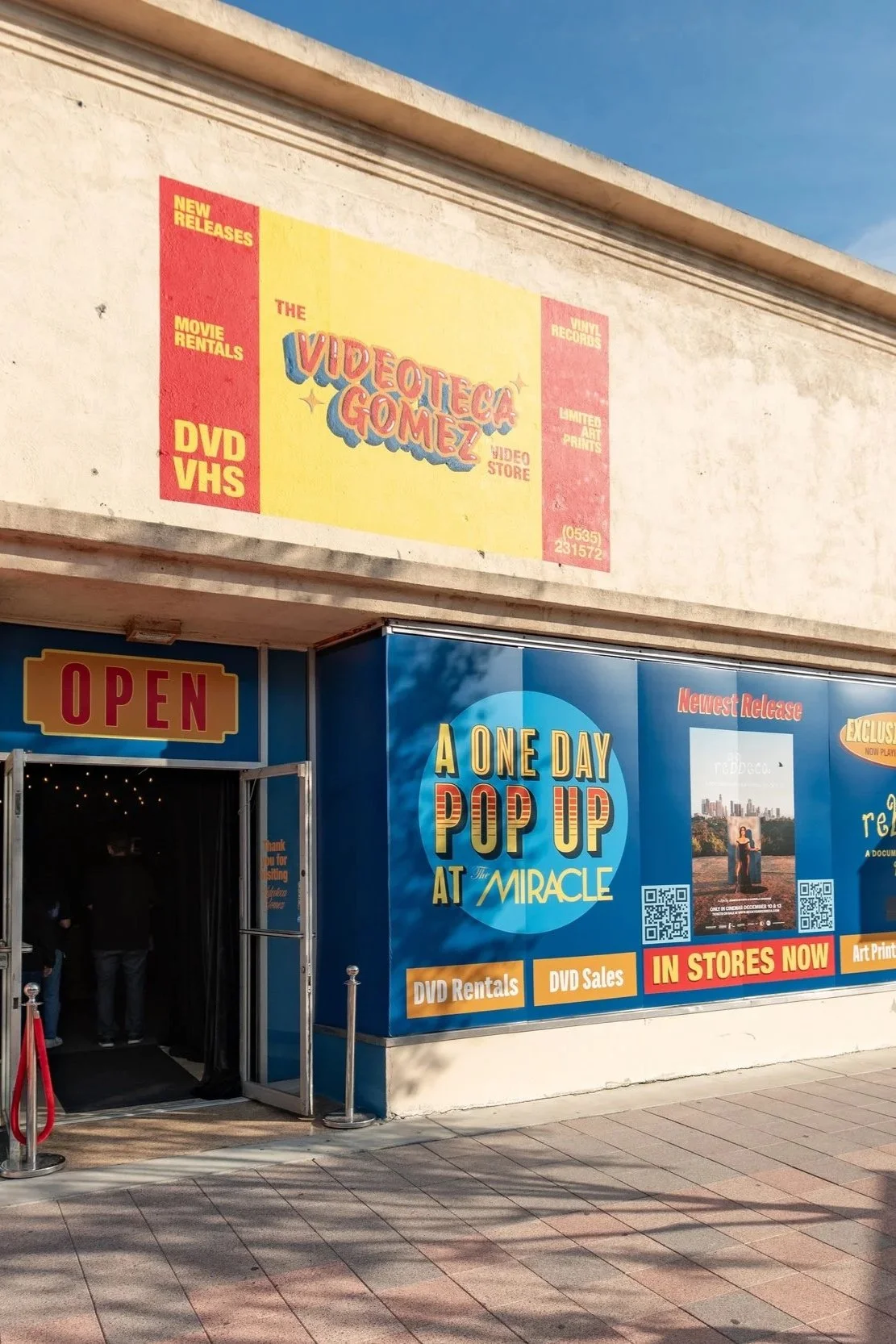 Mercado De Rebbecat. An entire street shut down. Vendors hand-selected by Becky. Culturally rooted, community-first. The Red Wall The iconic red wall from Tribeca Film Festival, recreated and brought home to Inglewood. Videoteca Gómez Vintage styling, custom signage, branded merch, a photo booth, and a mini screening room. Every detail in service of a single fictional world. Te Quiero Siempre, LA An evolving collage installation built from Becky's childhood, creative process, and career milestones. Custom postcards invited guests to add to it: "I love the city that raised me because..." Gomez Cam Stacked CRT televisions playing live security-style footage of guests. A small detail that made the whole space feel lived-in.