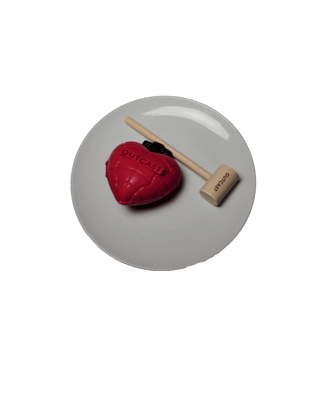 The concept placed service at the center of every touchpoint. Suited male models as personal butlers. A custom silver Outcast bell at each setting. Bespoke dinner plates carrying Outcast-coded quotes. Personalized chrome lighters and snakeskin cigarette cases as keepsakes. Every branded element designed to feel collectible, and memorable.